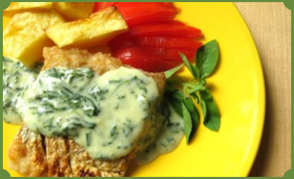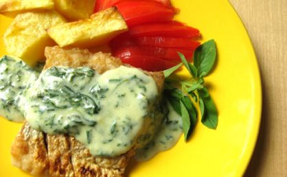 Enquanto o peixe fica pronto, prepare o espinafre. Passe água quente nas folhas, deixe 3 minutos e escorra bem. Coloque no liquidificador o espinafre, 100 ml de leite de coco e uma pitada de sal. Bata e adicione o restante o leite de coco até ficar com consistência de molho. Quando o peixe estiver cozido, despeje o molho por cima e sirva.